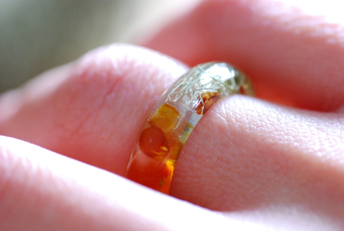 This unique handcrafted ring not only showcases the grounding essence of nature, but also adds a touch of autumnal vibrancy with its cozy orange hues.