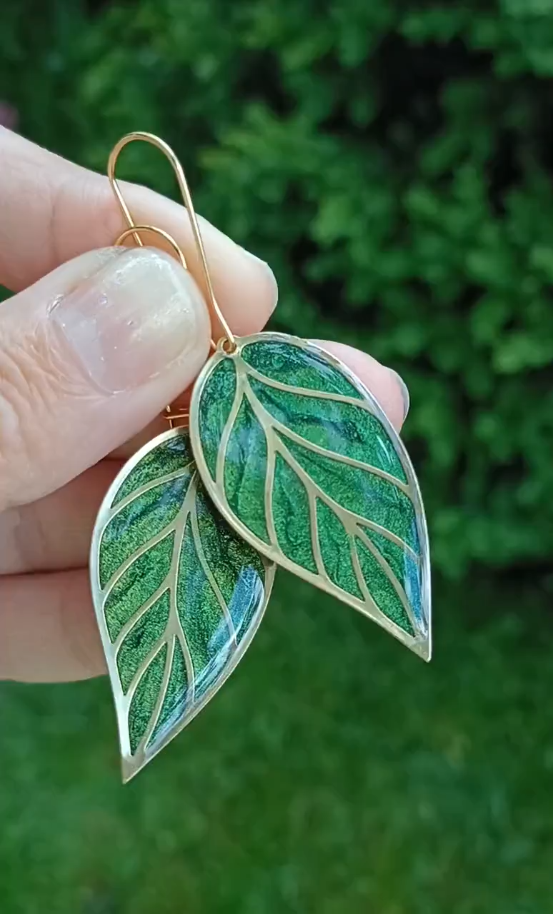 Color Shifting Summer Green Leaf Earrings, Hand-Painted Boho Jewelry