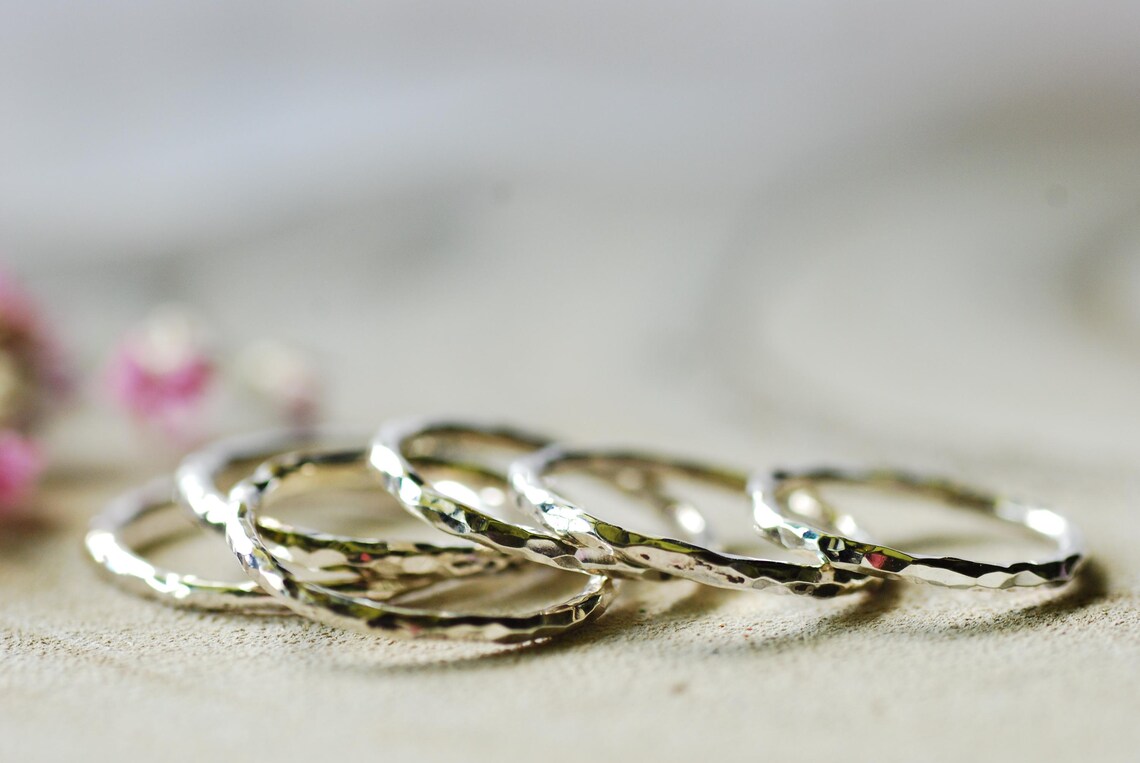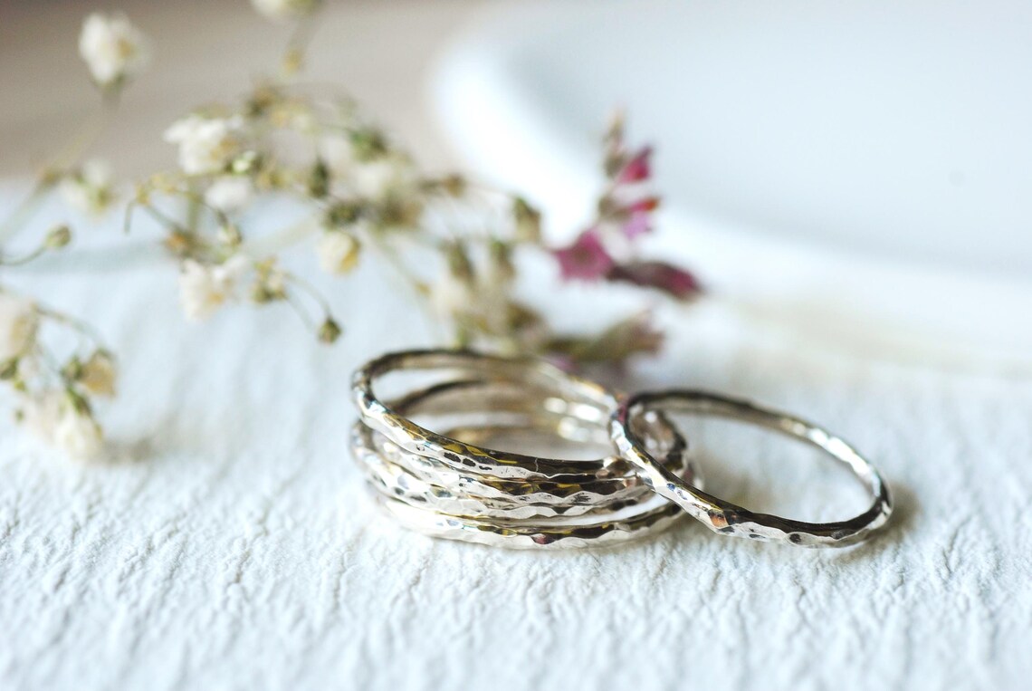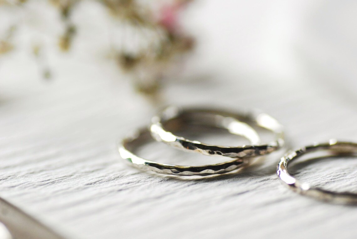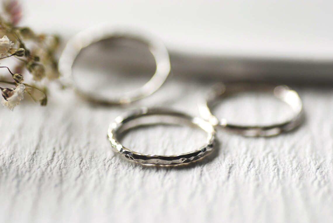The thin band measures an about 2mm thick, perfect for stacking with other thin rings of same or different styles.