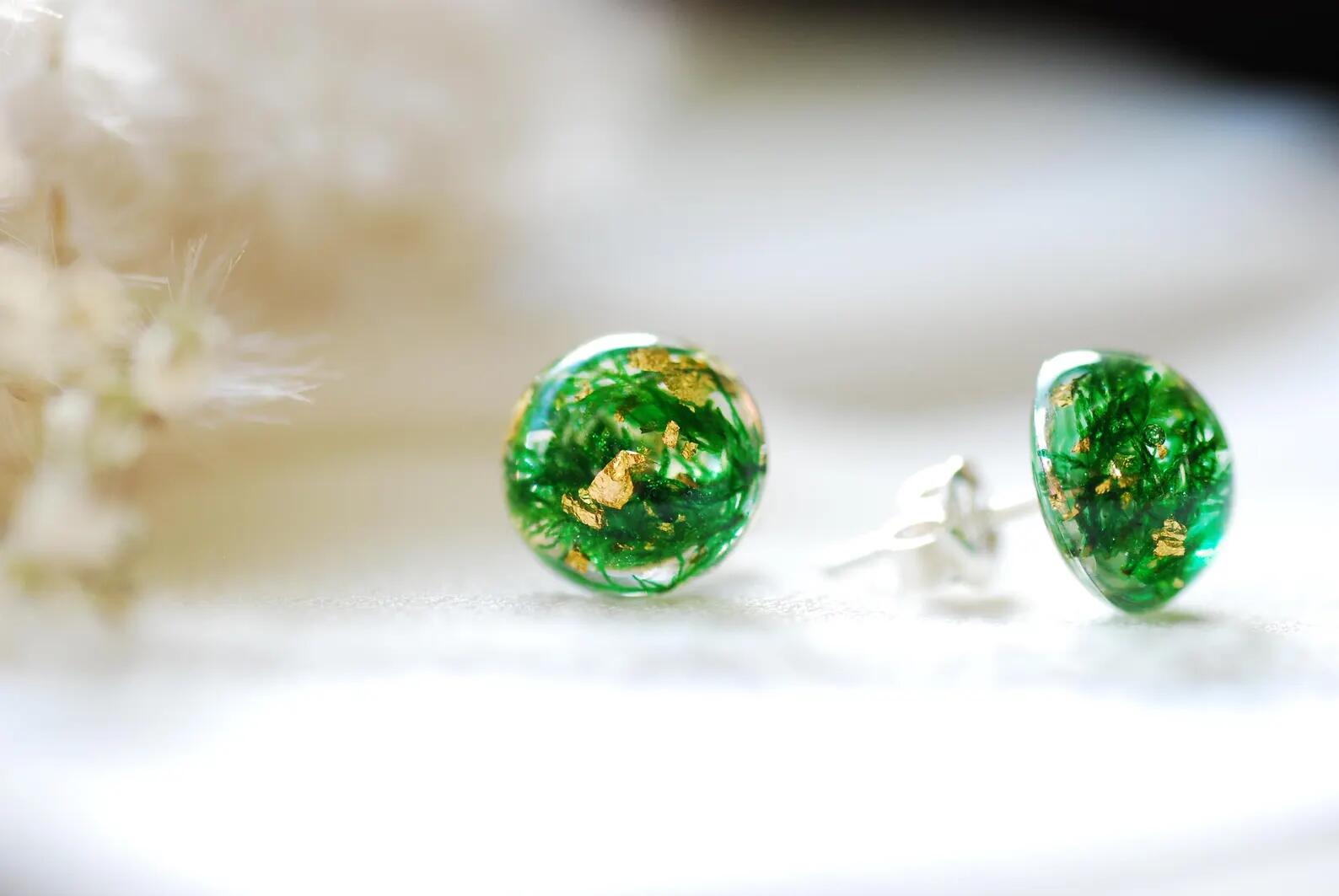 Whether you’re dressing up for a special occasion or adding a unique touch to your everyday look, these moss and gold stud earrings are a must-have addition to your jewelry collection.